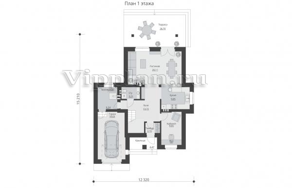 | Размеры дома: | 15.21м×12.32м |